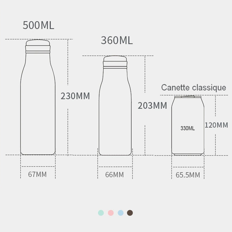 - Capacités : 360 mL, 500 mL