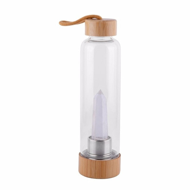 Profitez des bienfaits de la Gourde en verre et bambou avec cristal