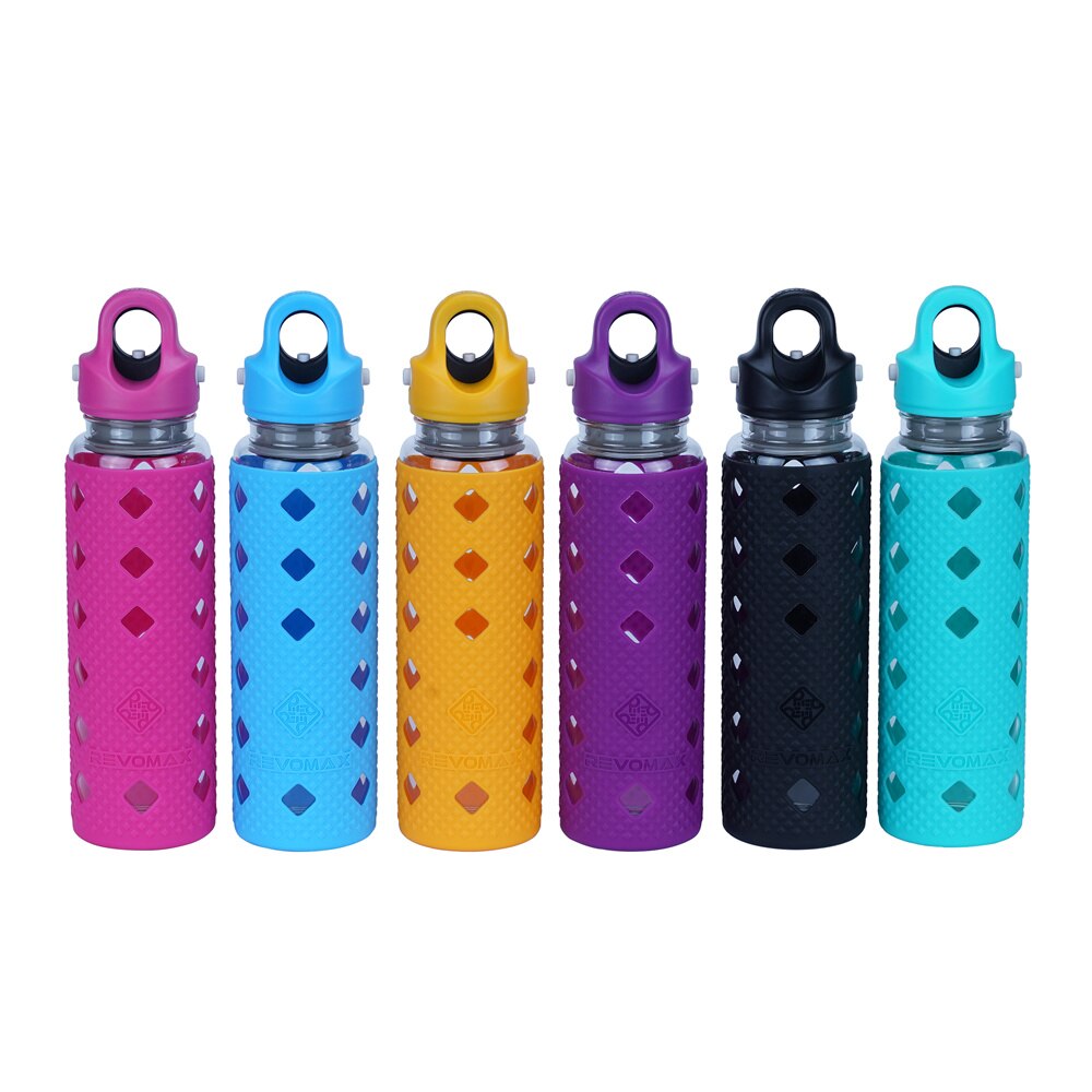 Découvrez la gourde en verre RevoMax, pratique et élégante, parfaite pour toutes vos boissons.