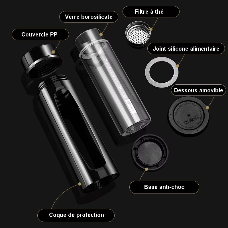 Découvrez la Gourde en verre thermo résistant pour vos boissons chaudes et froides