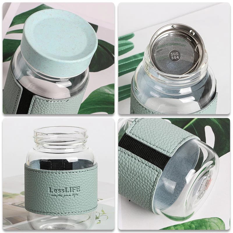 Cet accessoire essentiel vous accompagne partout, que vous soyez au bureau, à la salle de sport ou en balade. Sa structure en verre borosilicate assure une grande robustesse et une résistance thermique optimale, vous permettant de transporter vos boissons chaudes ou froides en toute sécurité. Emportez votre thé ou votre infusion grâce à l’infuseur inclus, et savourez chaque gorgée.