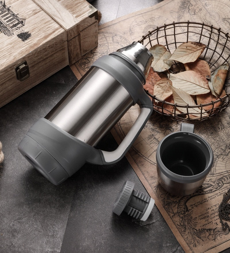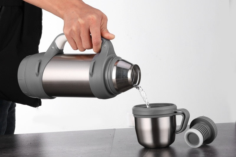 Le Thermos avec 2 tasses se distingue par sa grande praticité. Grâce à sa poignée ergonomique, il est facilement transportable et manipulable dans toutes les situations. Chaque élément est pensé pour vous offrir une expérience utilisateur sans pareil, rendant vos escapades encore plus agréables.